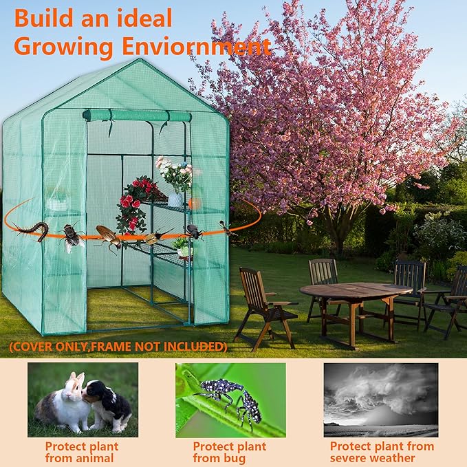 Walk-In Greenhouse Replacement Cover 56×56×76 Inch PE Waterproof Cover with Roll-Up Zipper Door for Plants