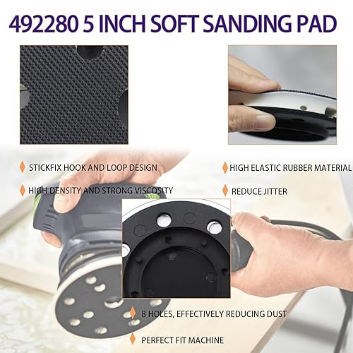Upgrade your sanding setup with this high-quality 5-inch Soft Sanding Pad, designed as a direct replacement for Festool orbital sanders including ETSC125, ETS125, ESC125, EC125, LEX125, and Jetstream models. With 8 holes for optimal dust extraction, this replacement pad ensures smooth sanding, reduces clogging, and improves overall sanding efficiency.